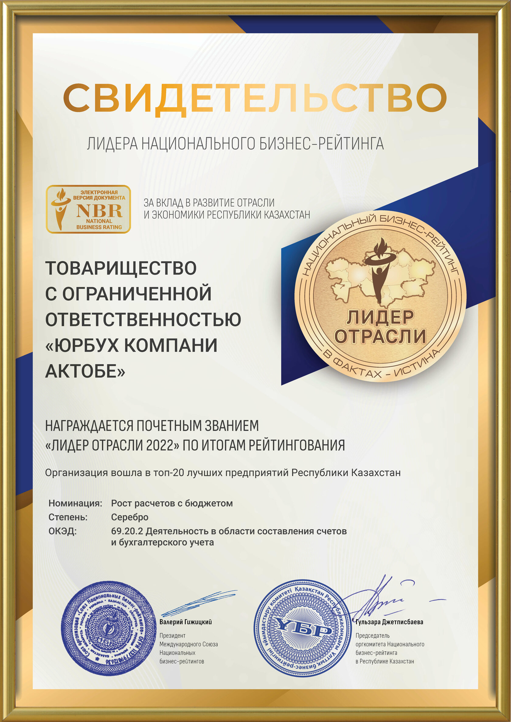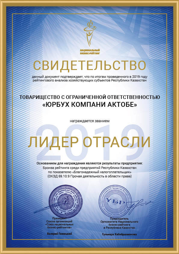 раза стали обладателями звания Лидера отрасли, по результатам общегосударственного рейтинга субъектов хозяйствования РК за 2019 г., 2020 г., 2022 г. и 2023г.